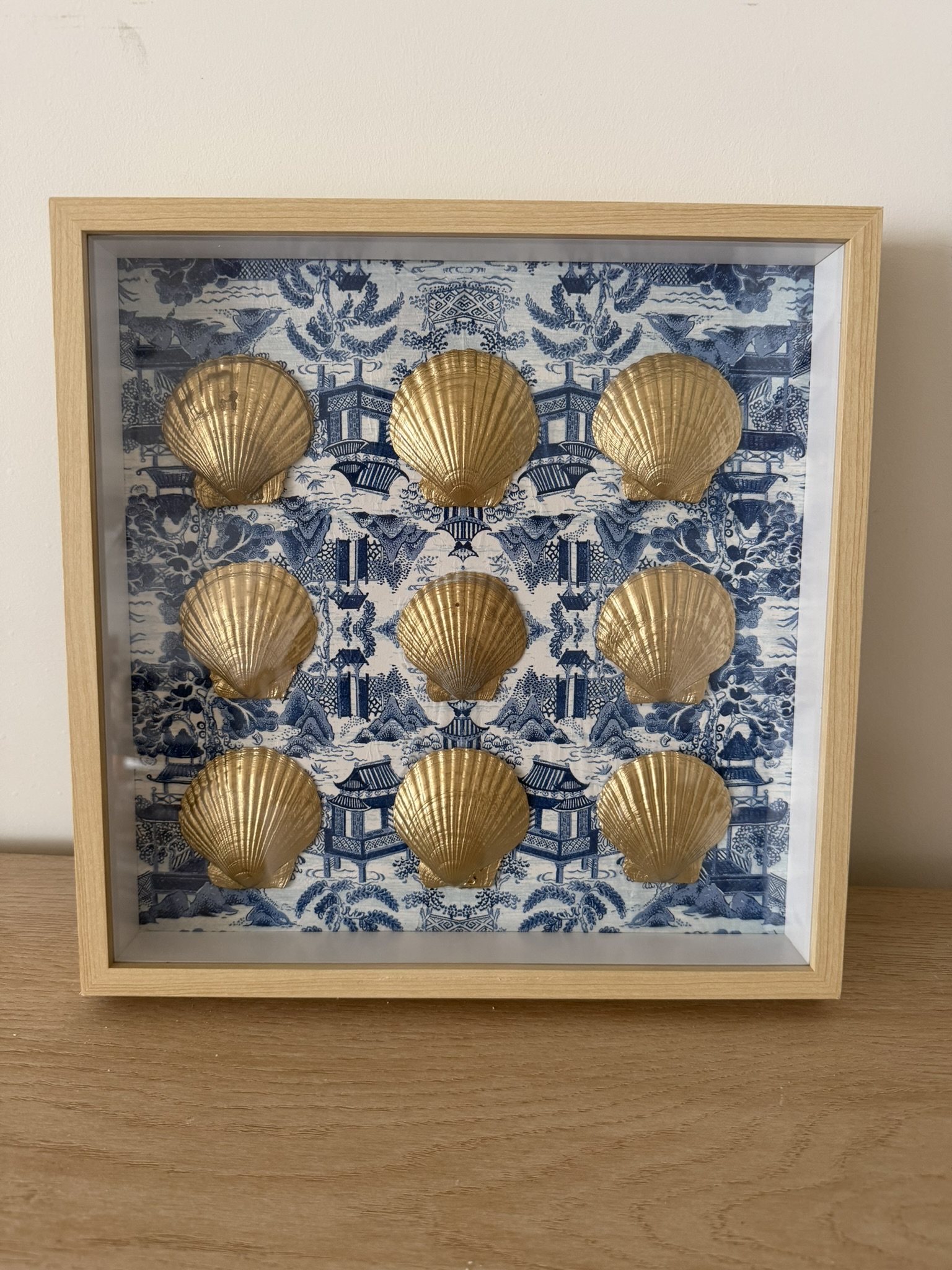 Chinoiserie Toile Scallops on Blue Floral Shadow Box