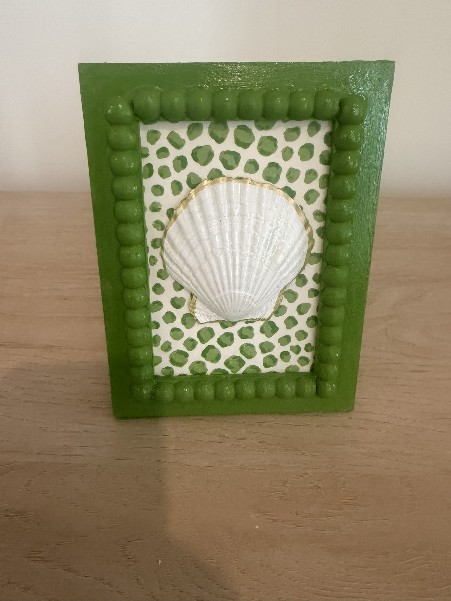 White Scallop on Green Leopard Spot in Green Beaded Frame